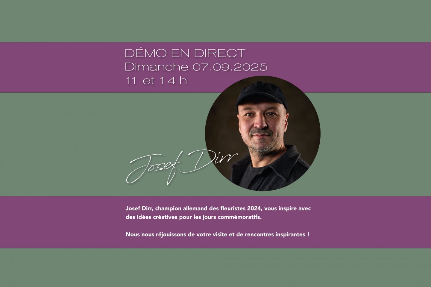 Josef Dirr, champion allemand des fleuristes 2024, vous inspire avec des idées créatives pour les jours commémoratifs. Dans ses démonstrations en direct, il présente une sélection variée d'oeuvres qui séduisent par leur symbolisme expressif et le dialogue passionnant entre les matériaux frais et séchés.