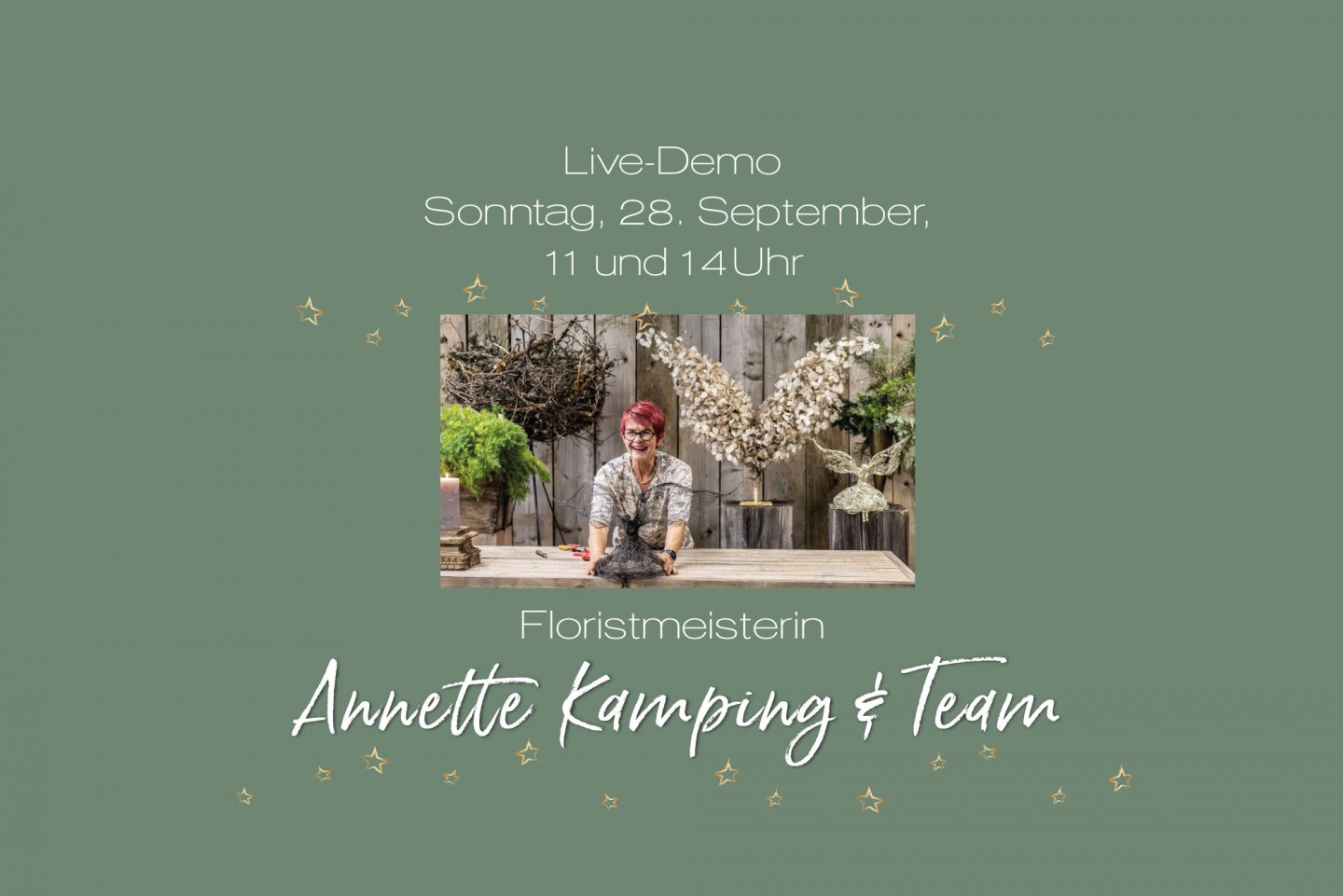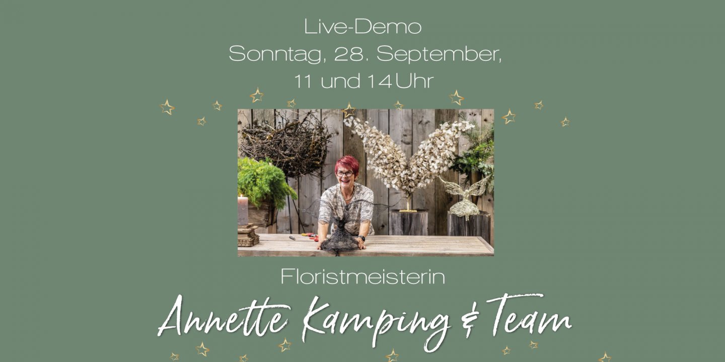 Annette Kamping und Team präsentieren Highlights für die Advents - und Weihnachtssaison 2025. Bei den LIVE-DEMOS am Sonntag, jeweils um 11 und 14 Uhr, werden interessante Techniken und neue praxisnahe Ideen vorgestellt.